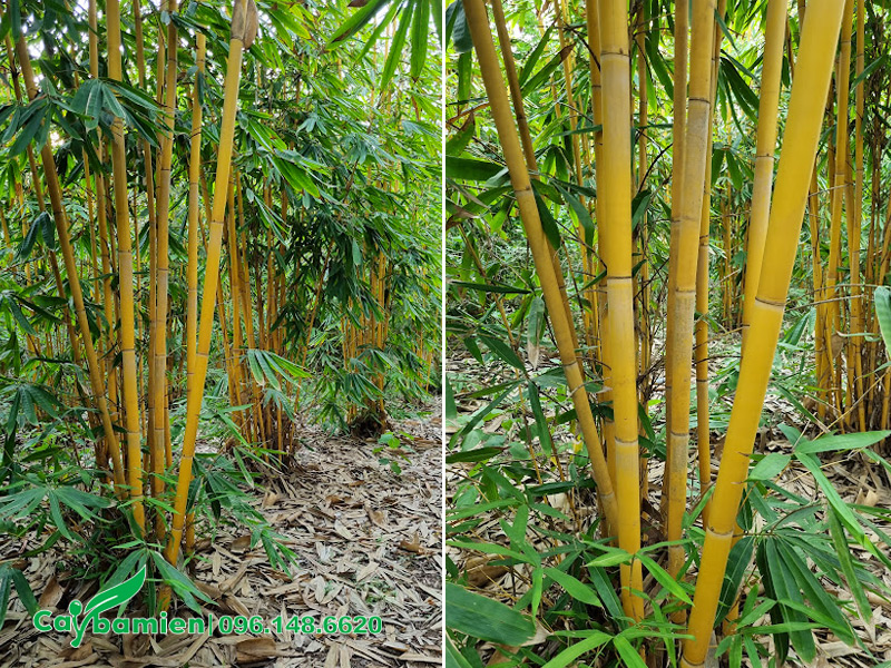 Thân: Thân cây tròn, thẳng, có màu vàng tươi óng ả, đôi khi xen lẫn màu xanh nhạt khi còn non hoặc trồng ở vị trí ít nắng. Cây trưởng thành có chiều cao 7-15m, đường kính 6-8cm. Thân cây chia thành nhiều đốt, chiều dài đốt 30-58cm, độ dày thành 3-5mm.